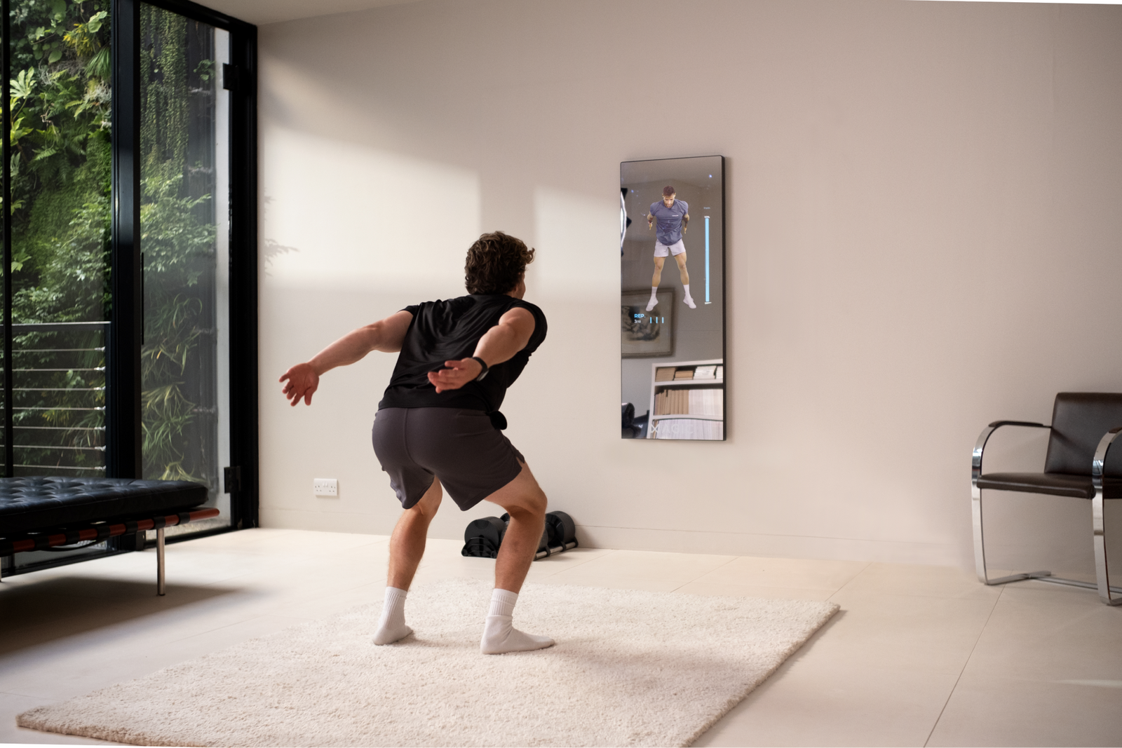 Celebrity athletes appear as a hologram in the Mirror, coaching you and giving you real-time audio and visual form feedback.